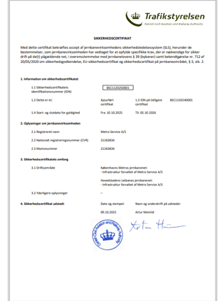 Som eneste danske operatør og infrastrukturforvalter med en BOStrab Betriebsleiter, er sikkerhed vores førsteprioritet.