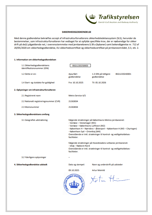 Som eneste danske operatør og infrastrukturforvalter med en BOStrab Betriebsleiter, er sikkerhed vores førsteprioritet.